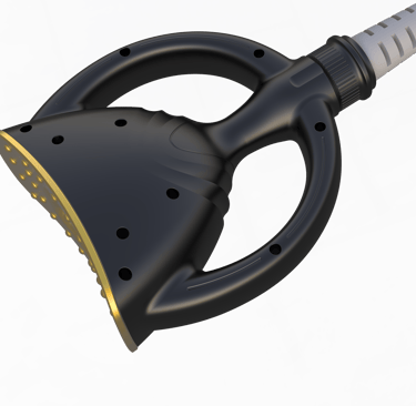 RF & EMS Applicator: Delivering a powerful synergy of thermal and electrical energy. The Monopolar RF generates targeted heat that stimulates fibroblast proliferation and contraction, effectively improving skin sagging, wrinkles, and overall elasticity. This deep thermal action also promotes fat cell metabolism and apoptosis, accelerating blood flow and lymphatic drainage to help break down stubborn cellulite. Thanks to the exceptional conductivity of the brass material, heat is transferred rapidly. Paired with EMS technology that mimics the brain's natural nerve signals, it induces active muscle contractions to enhance circulation and metabolism, while providing deep relaxation for tight, aching muscles.